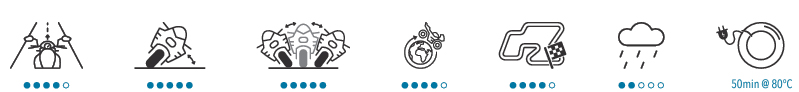 Para su uso en pista, recomendamos utilizar calentadores de neumáticos a 80 °C durante al menos 50 minutos y seguir nuestras recomendaciones de presión en caliente y en frío hasta que encuentres la combinación de presión que mejor se adecue a tu motocicleta, a las condiciones de la pista y a tu estilo de conducción.