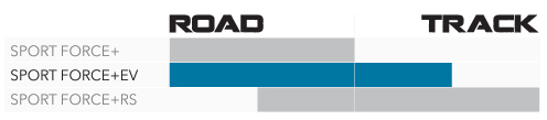 El SPORT FORCE+ EV es una EVolución del SPORT FORCE+ que incorpora la tecnología especial de compuestos múltiples (MCTT) diseñada para alcanzar rápidamente una temperatura adecuada para el pilotaje, asegurando un excelente agarre en todos los ángulos de inclinación, sin dejar de brindar un excelente agarre así como estabilidad en rectas incluso después de un uso prolongado e intenso. El modelo SPORTFORCE+ EV tiene un contenido limitado de sílice que garantiza un rendimiento adecuado del agarre sobre mojado.